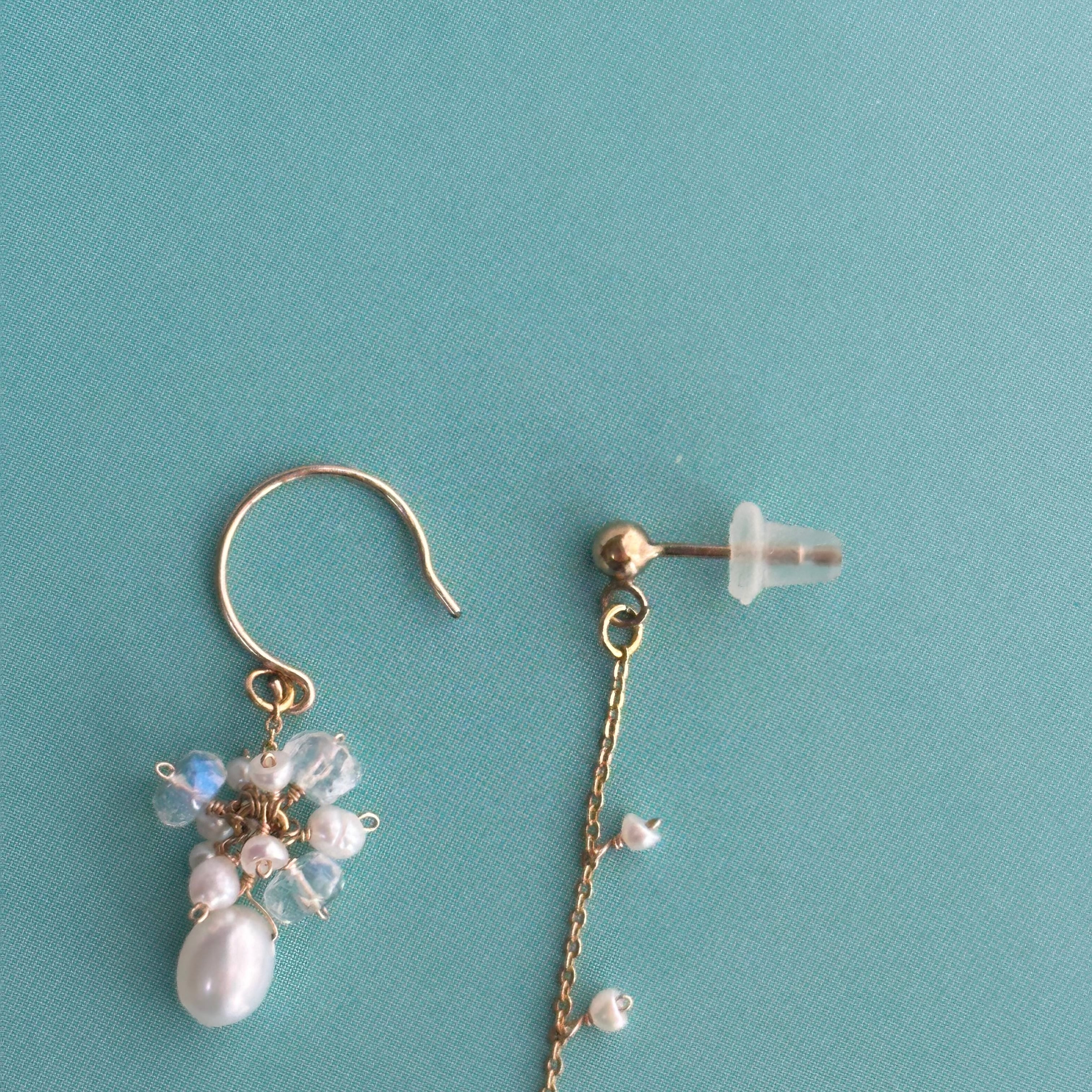 パール×ムーンストーン アシンメトリーピアス・イヤリング【14金GF】