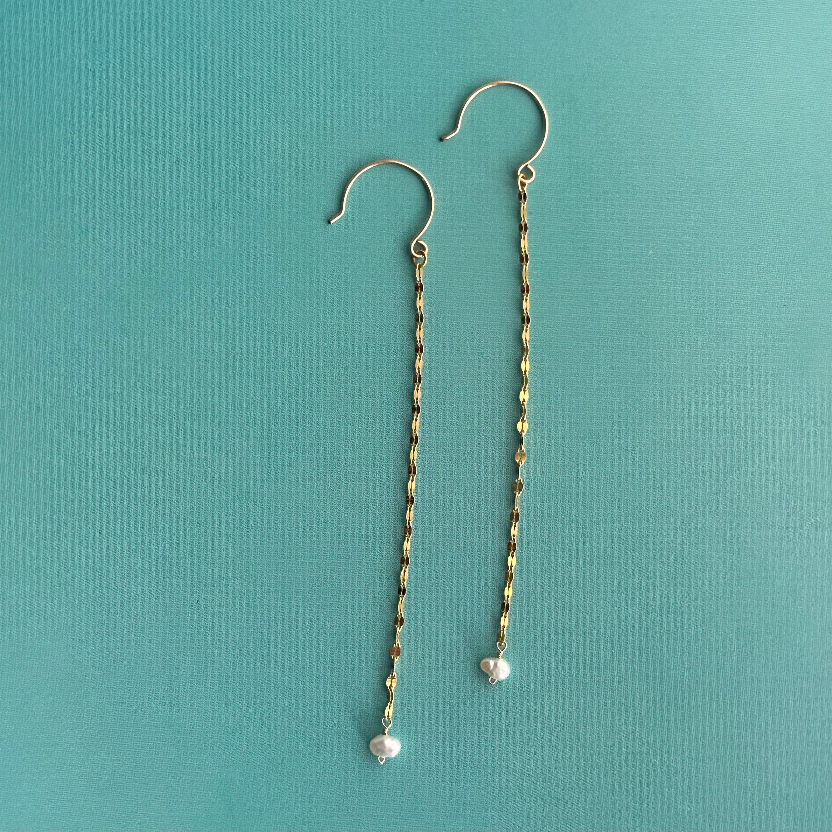 クローバーチェーンパールピアス・イヤリング WH【14金GF】