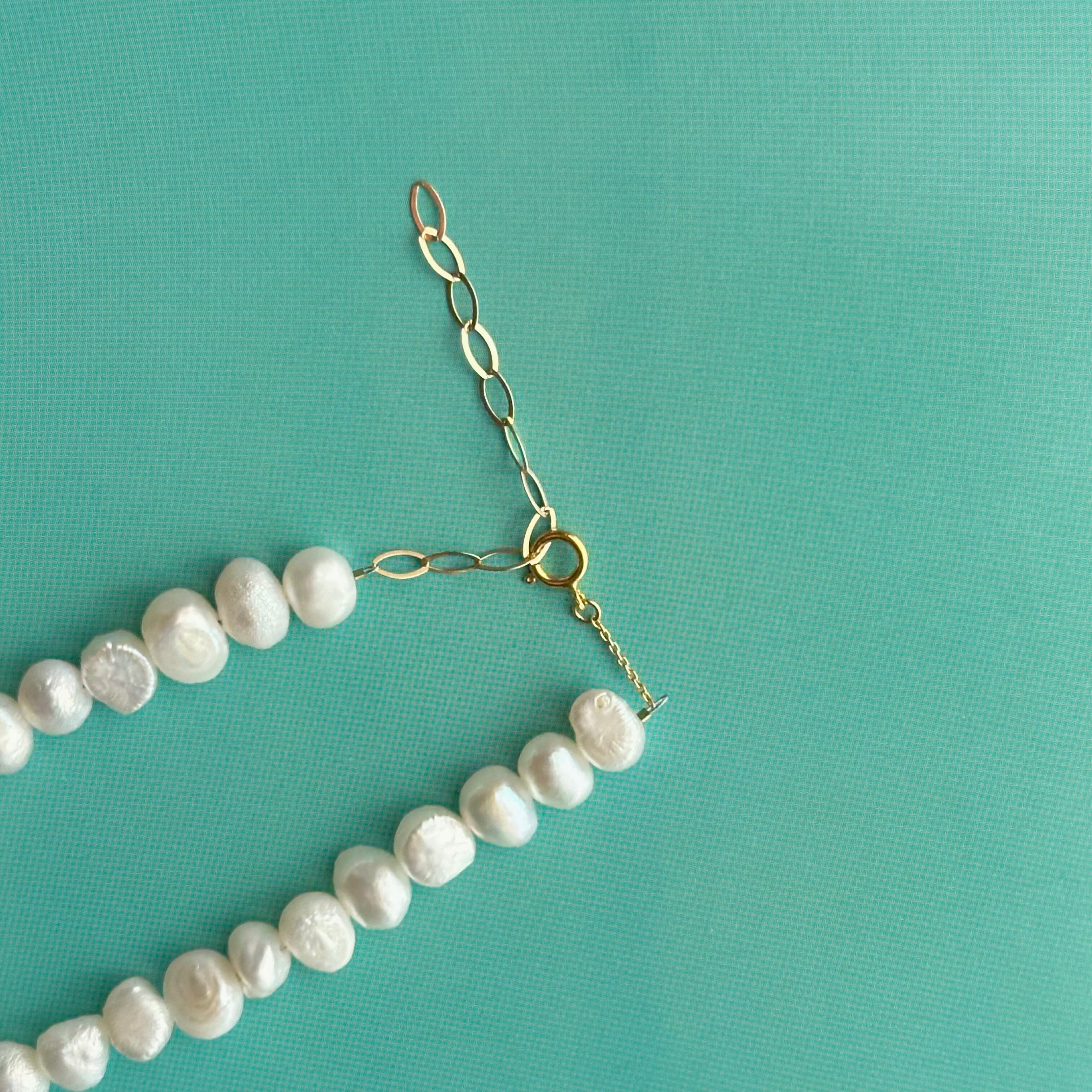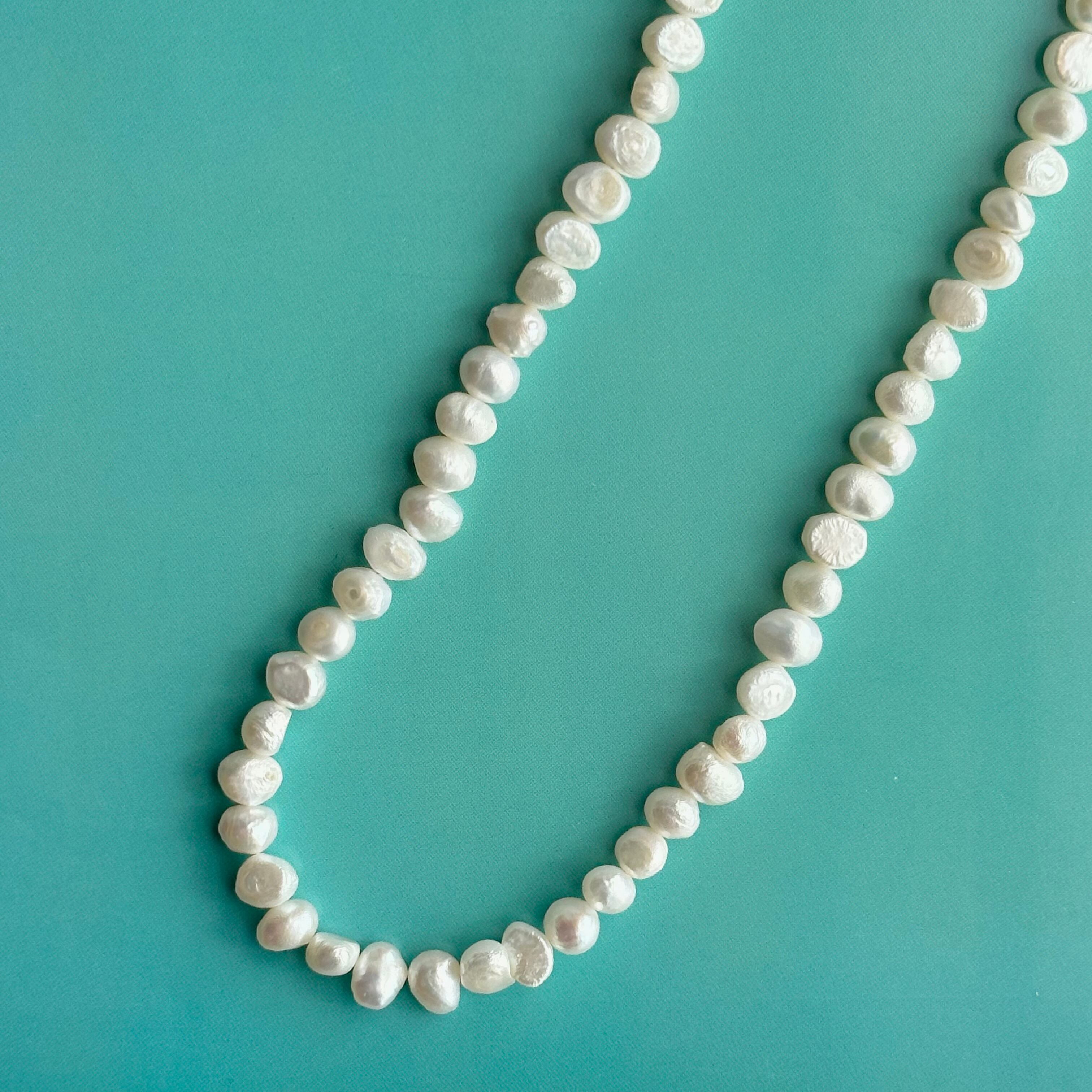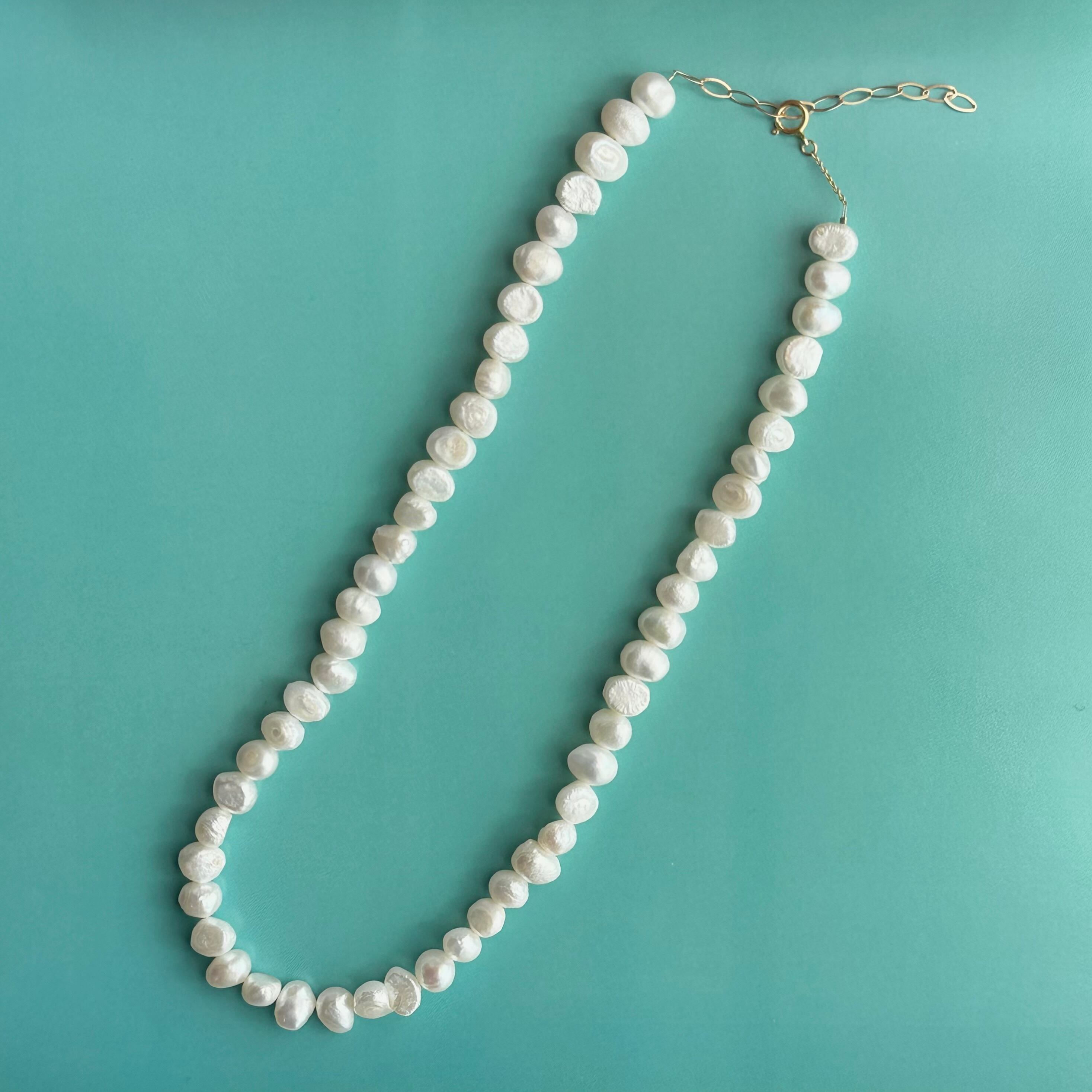 希少な少し大きめのバロックパールを通したショートネックレス。